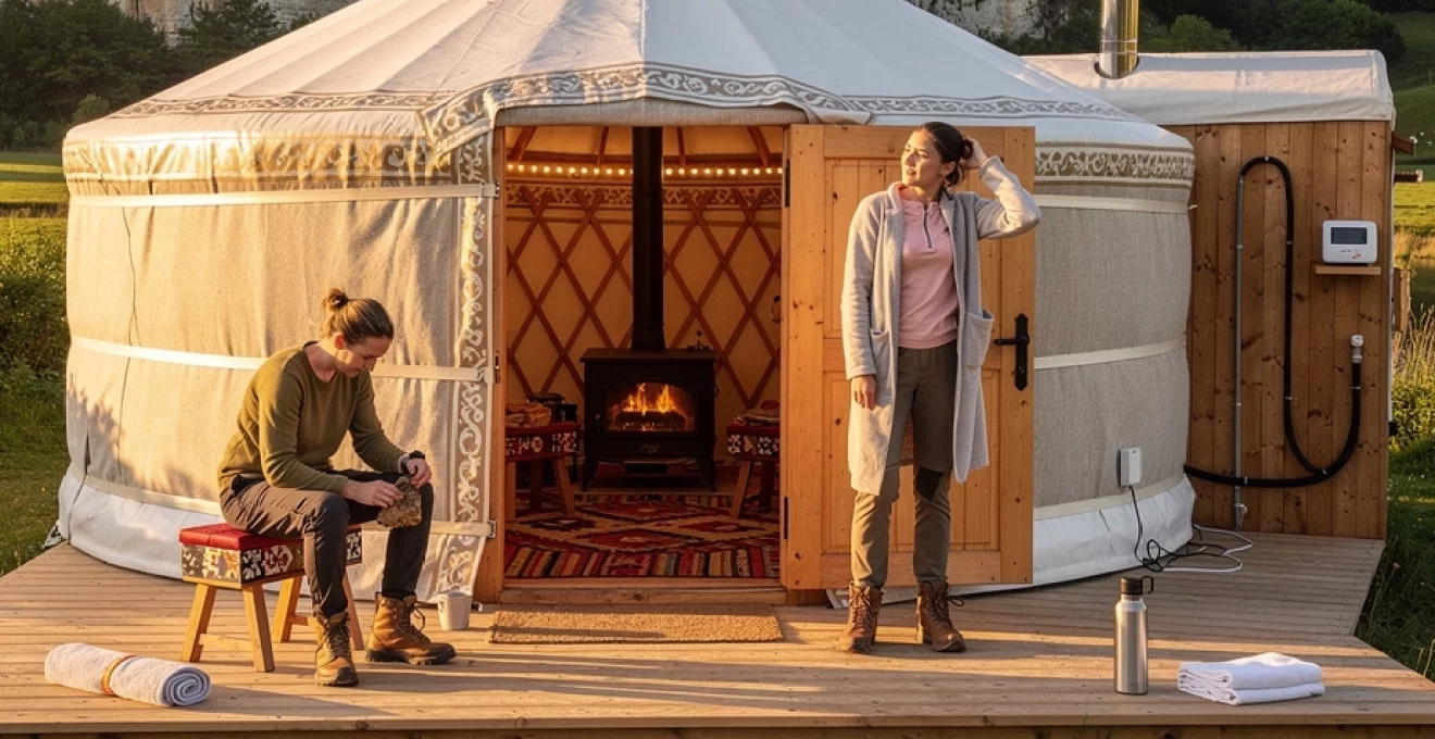 Selon la catégorie de l’hébergement, vous trouverez différentes configurations : bloc sanitaire commun à quelques mètres de la yourte, salle de bain privative dans un petit chalet à côté, ou véritable salle d’eau intérieure pour les modèles les plus haut de gamme. Dans les sites les plus engagés en écotourisme, l’eau est souvent chauffée par des systèmes solaires thermiques, et les toilettes sèches sont privilégiées pour limiter l’impact environnemental. Avant de réserver, prenez le temps de vérifier le type de sanitaires proposés : c’est un point clé pour le confort, surtout en séjour famille.