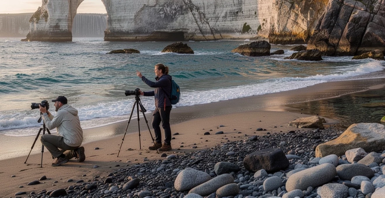 Enfin, gardez à l’esprit les contraintes spécifiques aux plages entourées de falaises : ombres portées marquées, reflets intenses sur l’eau, embruns qui se déposent sur la lentille. Un pare-soleil, un chiffon microfibre et une attention particulière au sens du vent vous éviteront bien des déconvenues. En choisissant les heures dorées du matin ou du soir, vous profiterez d’une lumière plus douce, de contrastes moins durs et, souvent, de sites plus calmes : l’idéal pour capturer ces paysages côtiers dans toute leur splendeur.