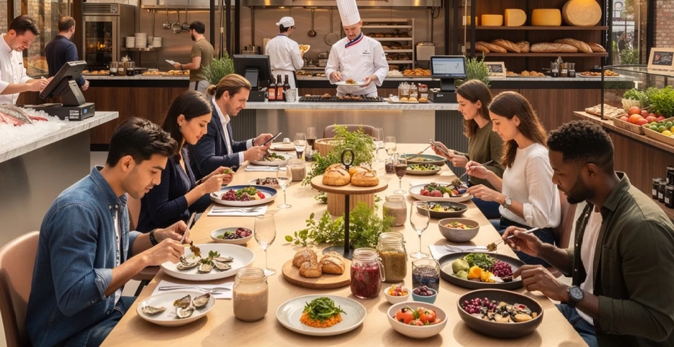 Cette capacité d’adaptation rapide distingue les halles gourmandes des formats plus rigides. Un concept qui ne répond plus aux tendances actuelles peut être remplacé par un stand spécialisé dans le végétal, la fermentation ou les produits de la mer, selon les signaux du marché. Pour vous, cela se traduit par une impression de fraîcheur permanente : à chaque visite, de nouvelles propositions, de nouveaux plats, de nouveaux univers culinaires à explorer.